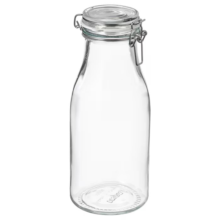 اگر به دنبال ظرفی شیشهای با طراحی زیبا و عملکرد بالا برای نگهداری مواد غذایی یا نوشیدنیها هستید، این بطری از سری KORKEN انتخابی هوشمندانه است. این ظرف با حجم ۱ لیتر و شیشه شفاف، به شما امکان میدهد که محتویات آن را بهراحتی مشاهده کنید. درب با سیستم قفل هوا (airtight) سبب میشود عطر و طعم مواد داخل حفظ شود و جامدات یا مایعات درون آن بیشتر سالم بمانند.